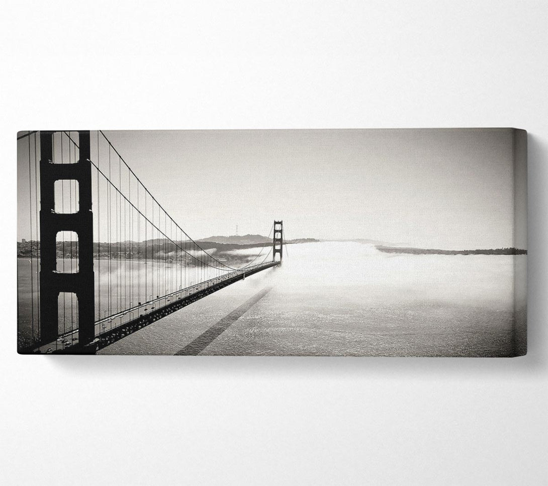 Golden Gate Bridge Black And White canvas, printed on coated polyester canvas. Mounted on to a 44mm box frame, ready to hang.
