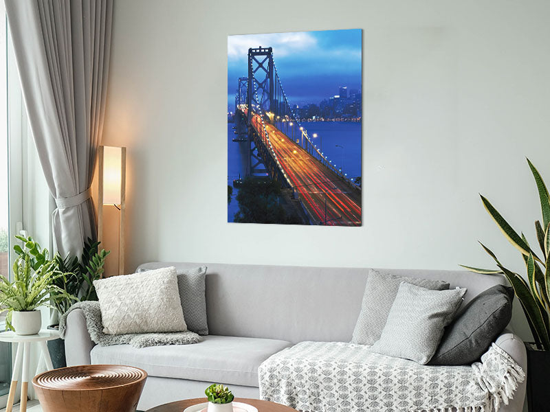 Golden Gate Bridge Blues Printed on brushed aluminium dibond. A modern way to display art and easy to maintain.