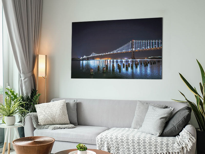 Golden Gate Bridge Light Reflections Printed on brushed aluminium dibond. A modern way to display art and easy to maintain.