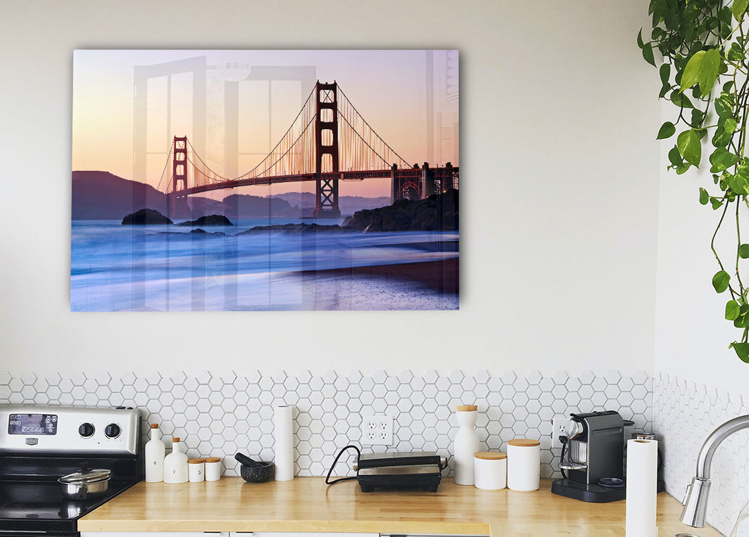 Golden Gate Bridge Over The Misty Waters acrylic print, UV printed onto 5mm thick acrylic glass. Comes with everything you need to hang on your wall.