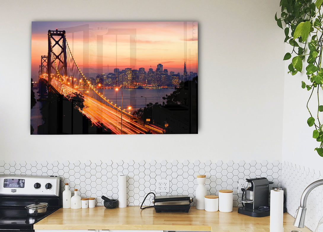 Golden Gate Bridge To The City acrylic print, UV printed onto 5mm thick acrylic glass. Comes with everything you need to hang on your wall.