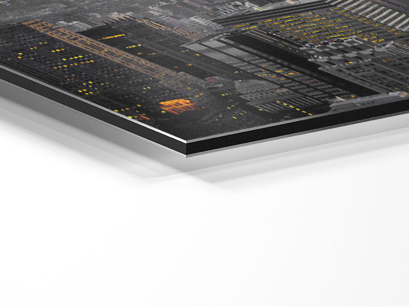 Golden Printed on brushed aluminium dibond. A modern way to display art and easy to maintain.