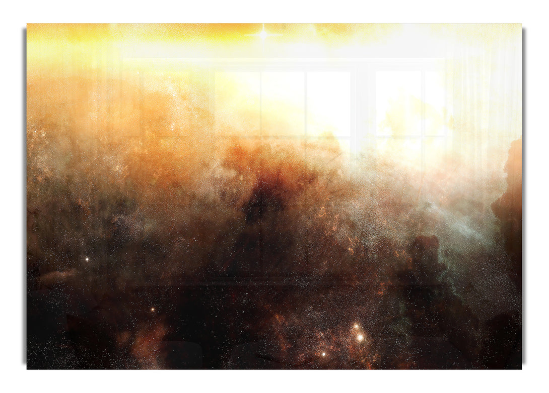 Golden Nebula acrylic print, UV printed onto 5mm thick acrylic glass. Comes with everything you need to hang on your wall.
