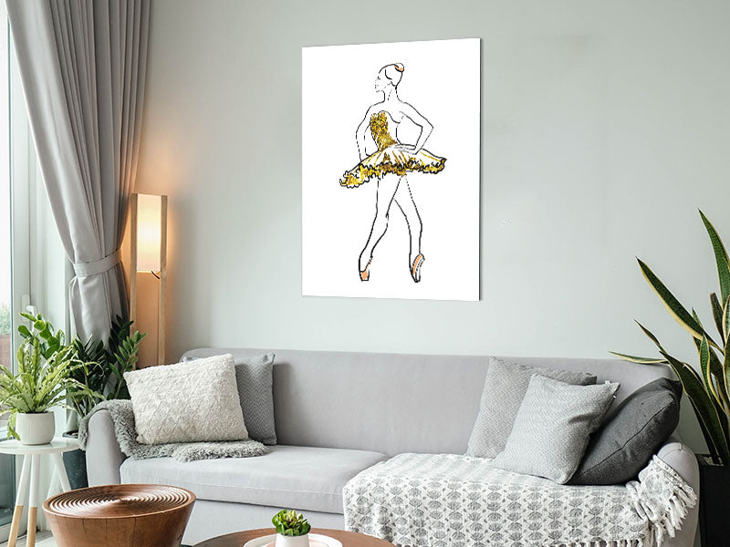 Golden Pink Ballerina 1 Printed on brushed aluminium dibond. A modern way to display art and easy to maintain.