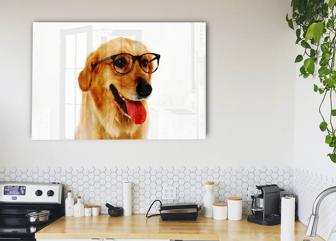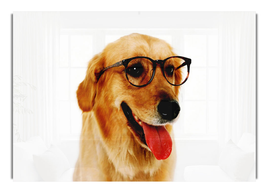 Golden Retriever Nerd acrylic print, UV printed onto 5mm thick acrylic glass. Comes with everything you need to hang on your wall.