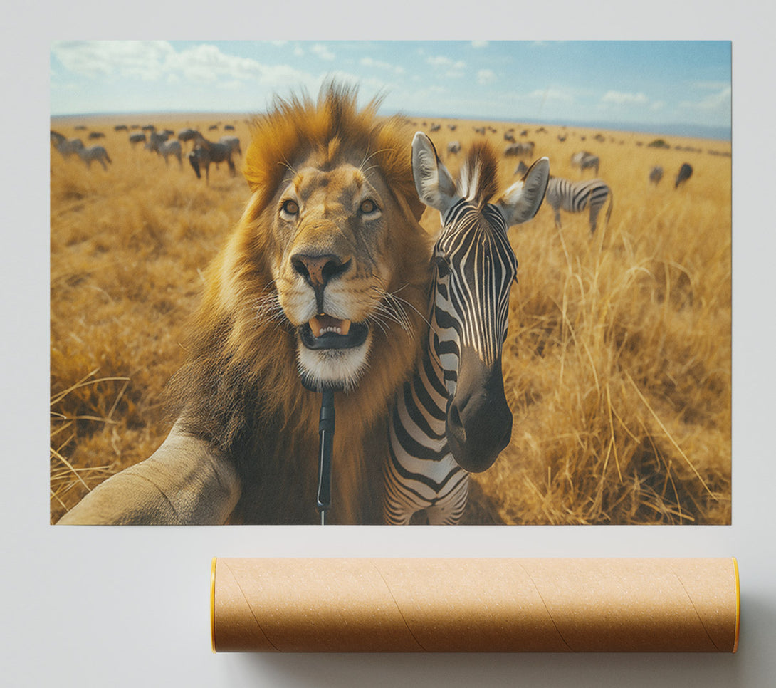 Our Golden Safari Selfie Poster is printed 260 GSM premium lustre paper that offers vibrant colours and exceptional detail.
