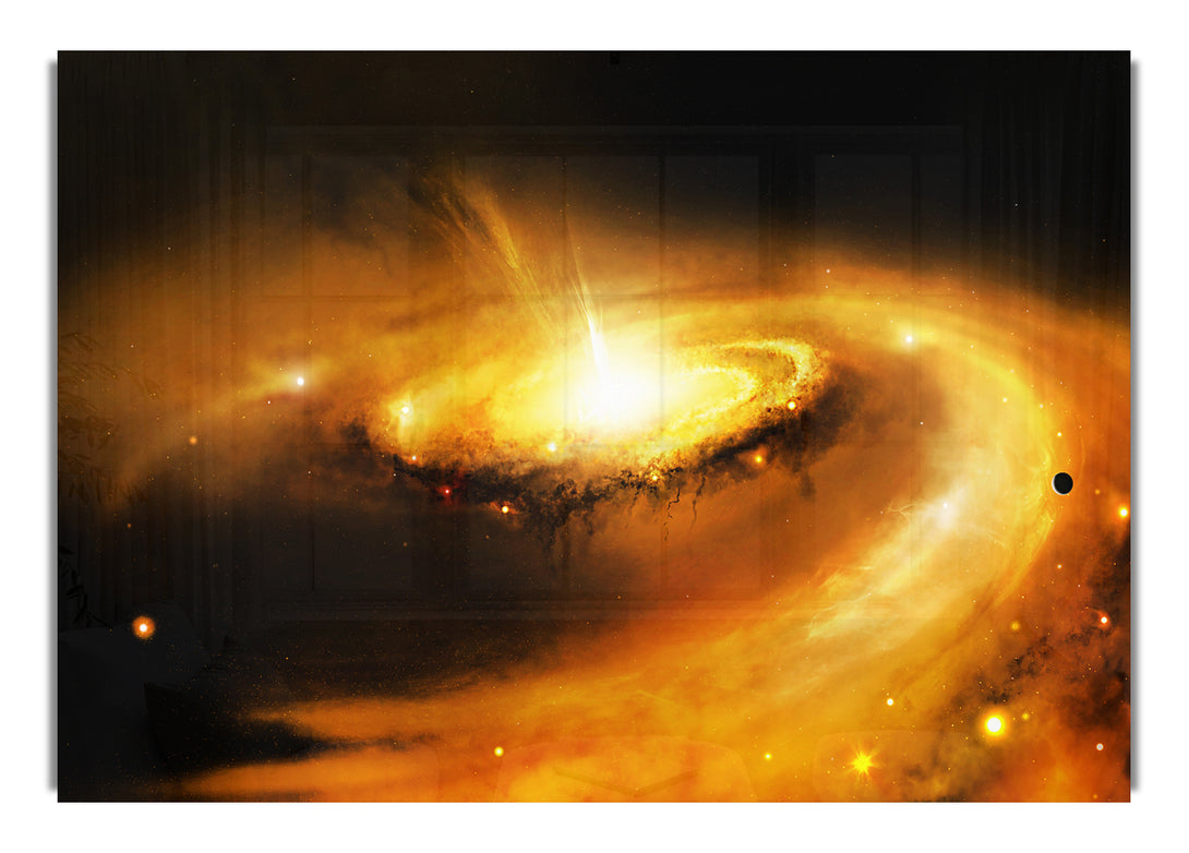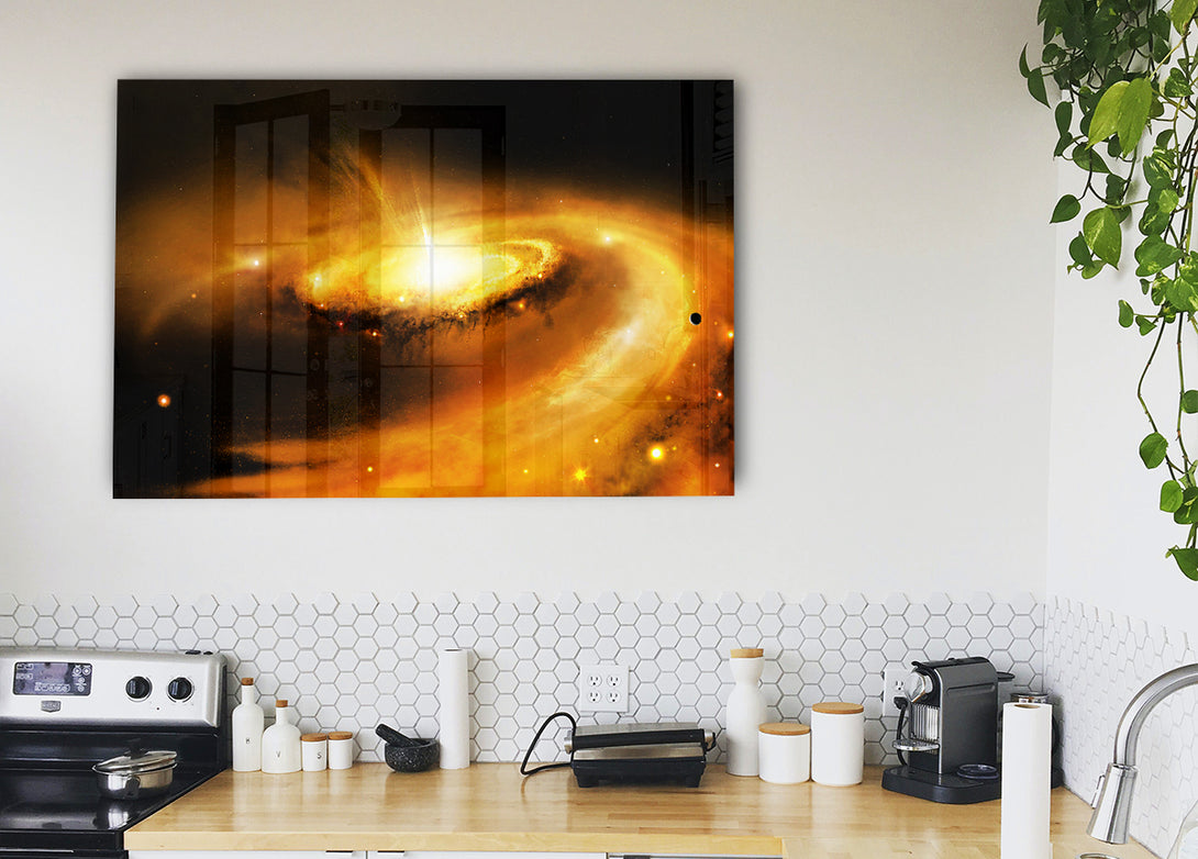 Golden Star Swirl acrylic print, UV printed onto 5mm thick acrylic glass. Comes with everything you need to hang on your wall.