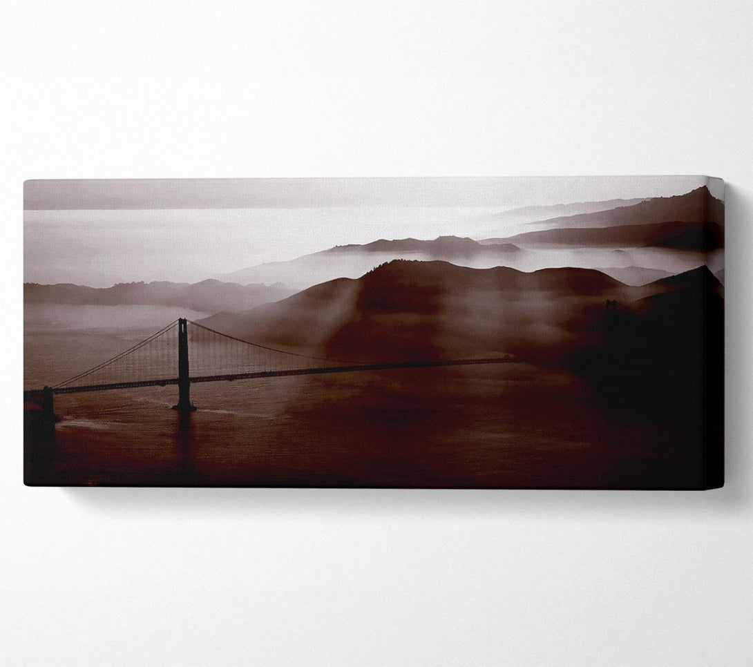 Goldon Gate Bridge Misty Morning Brown canvas, printed on coated polyester canvas. Mounted on to a 44mm box frame, ready to hang.