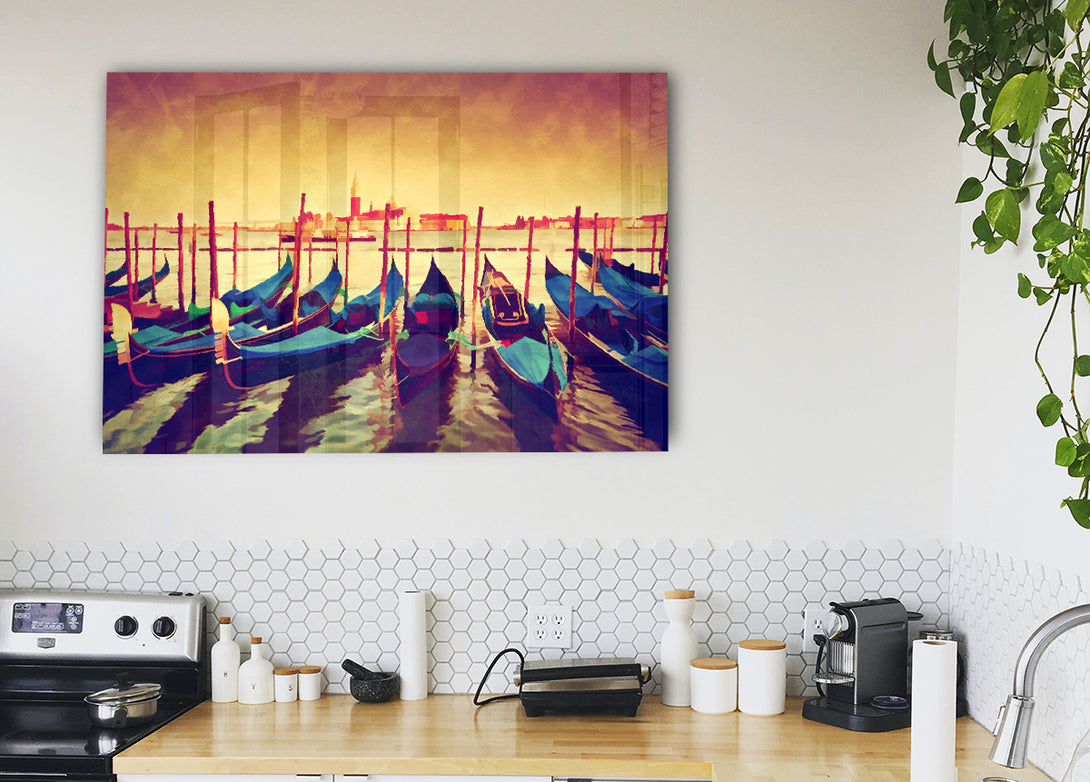 Gondola Line Up 8 acrylic print, UV printed onto 5mm thick acrylic glass. Comes with everything you need to hang on your wall.
