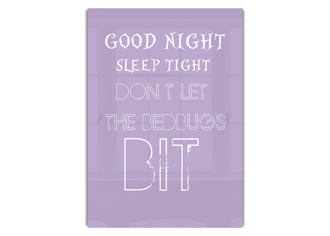 Good Night Sleep Tight 2 Lilac acrylic print, UV printed onto 5mm thick acrylic glass. Comes with everything you need to hang on your wall.