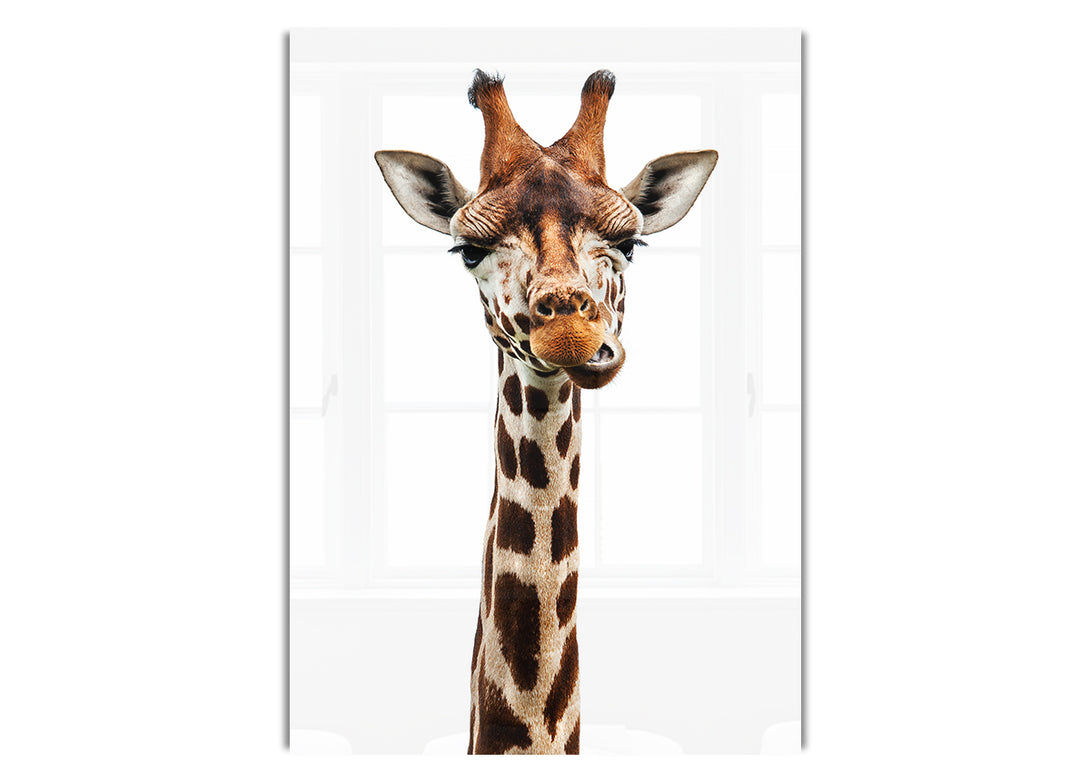 Goofy Giraffe acrylic print, UV printed onto 5mm thick acrylic glass. Comes with everything you need to hang on your wall.