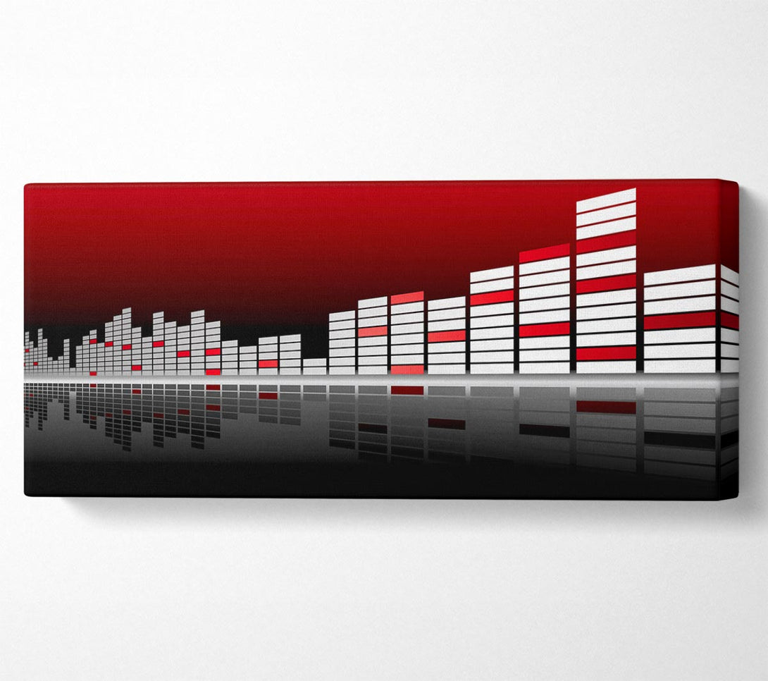 Graphic Equalizer Red canvas, printed on coated polyester canvas. Mounted on to a 44mm box frame, ready to hang.