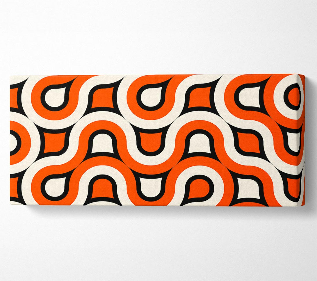 Graphical Maze Orange canvas, printed on coated polyester canvas. Mounted on to a 44mm box frame, ready to hang.