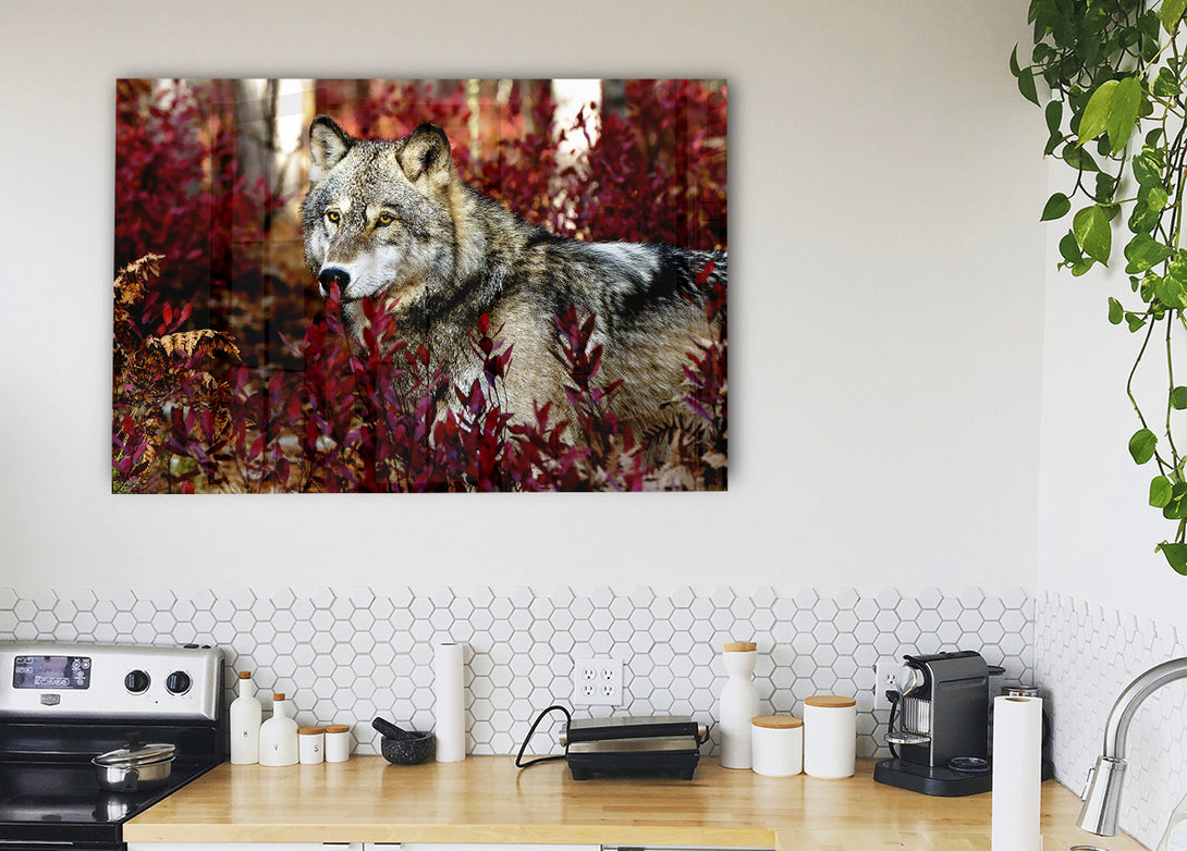 Gray Wolf acrylic print, UV printed onto 5mm thick acrylic glass. Comes with everything you need to hang on your wall.