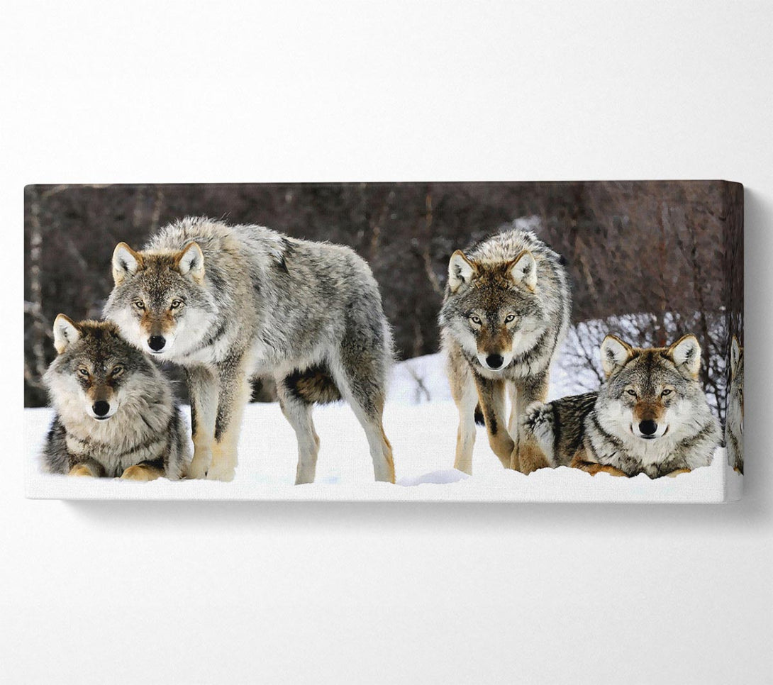 Gray Wolves Norway canvas, printed on coated polyester canvas. Mounted on to a 44mm box frame, ready to hang.