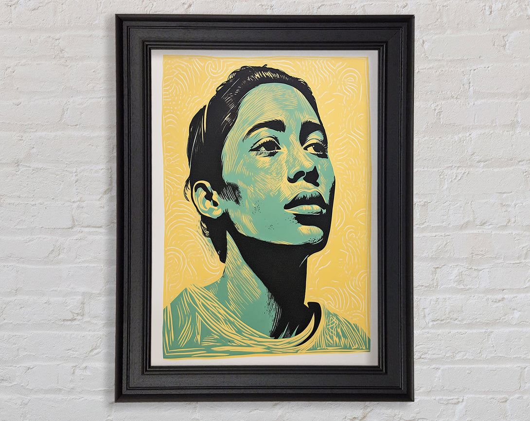 Green And Black Woman Framed Print