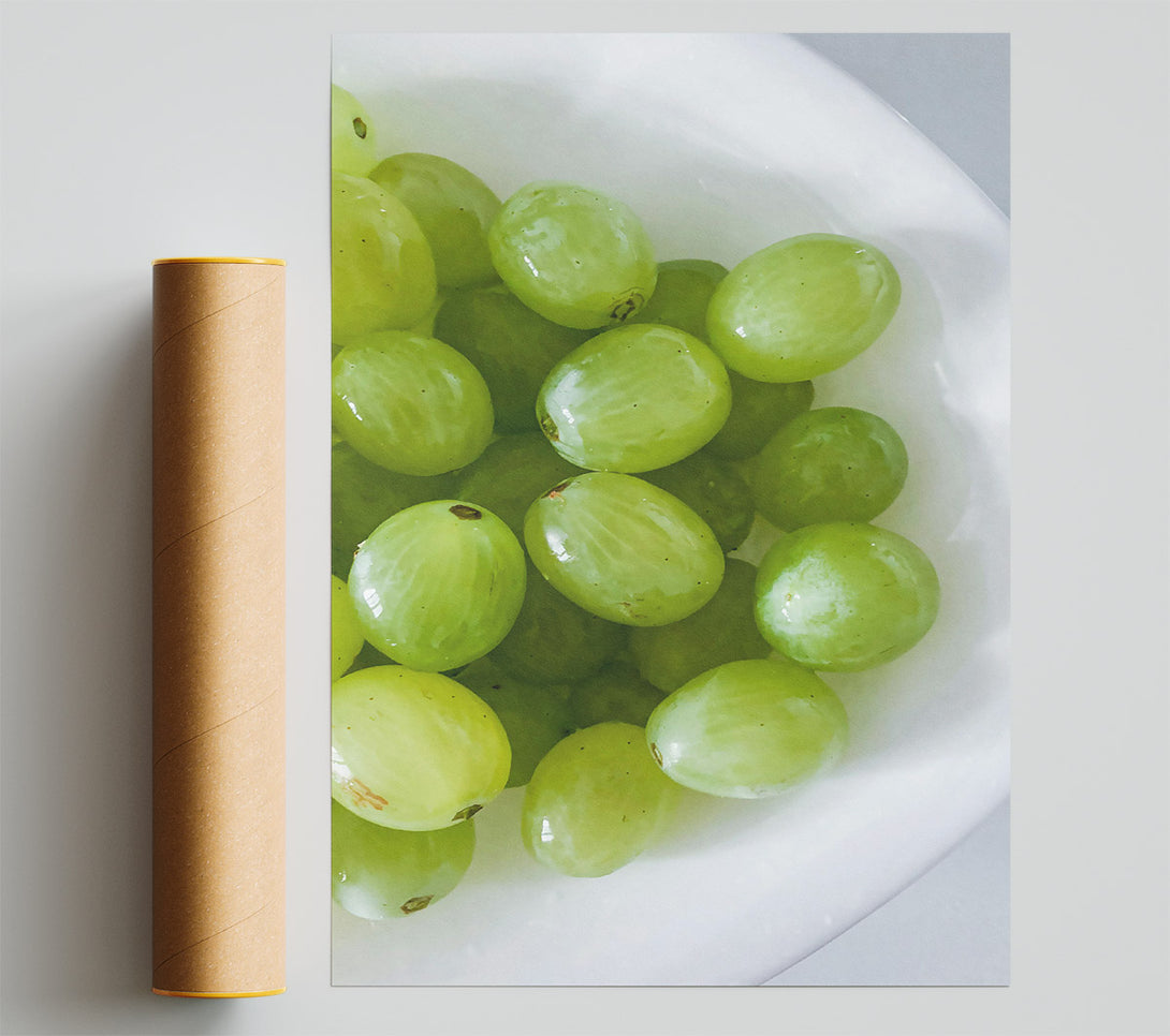 Our Green Grapes In Bowl. Poster is printed 260 GSM premium lustre paper that offers vibrant colours and exceptional detail.
