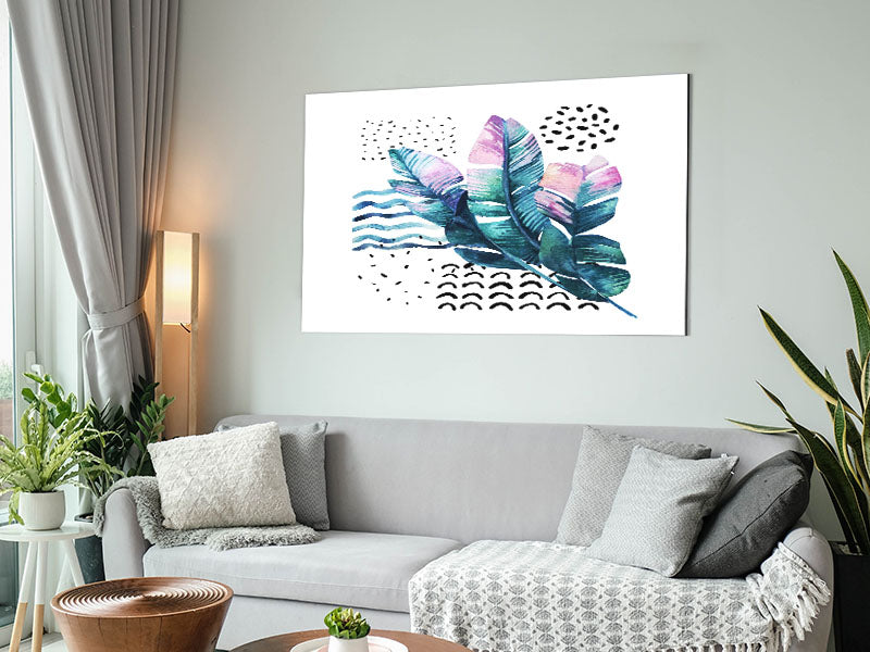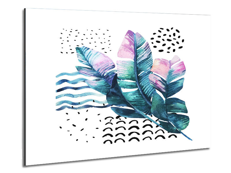 Green Leaves And Shapes Printed on brushed aluminium dibond. A modern way to display art and easy to maintain.