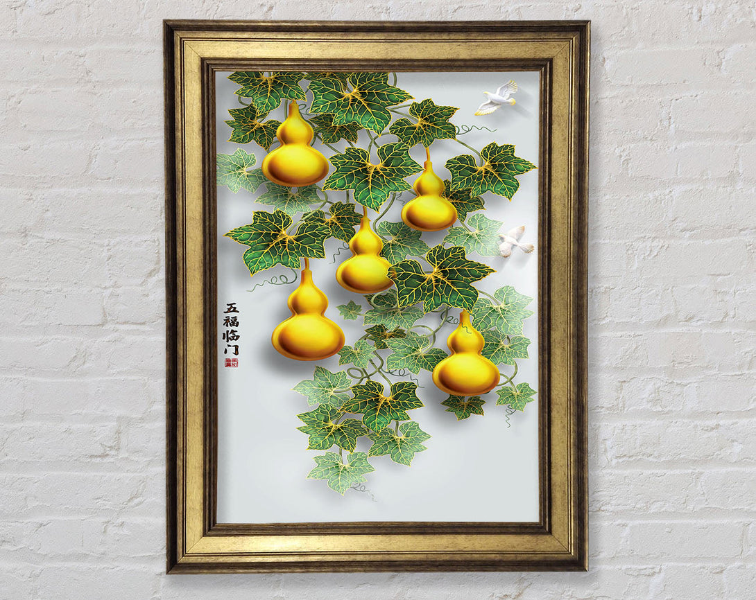 Green Leaves Yellow Ornaments Framed Print