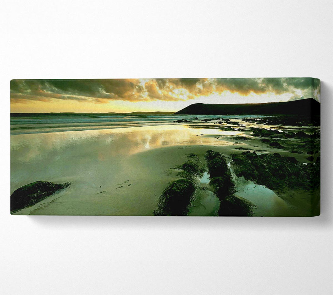 Green Ocean Reflections canvas, printed on coated polyester canvas. Mounted on to a 44mm box frame, ready to hang.