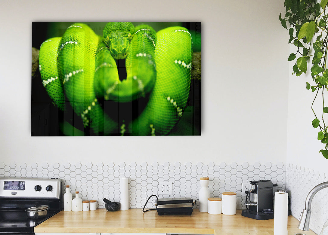 Green Snake acrylic print, UV printed onto 5mm thick acrylic glass. Comes with everything you need to hang on your wall.