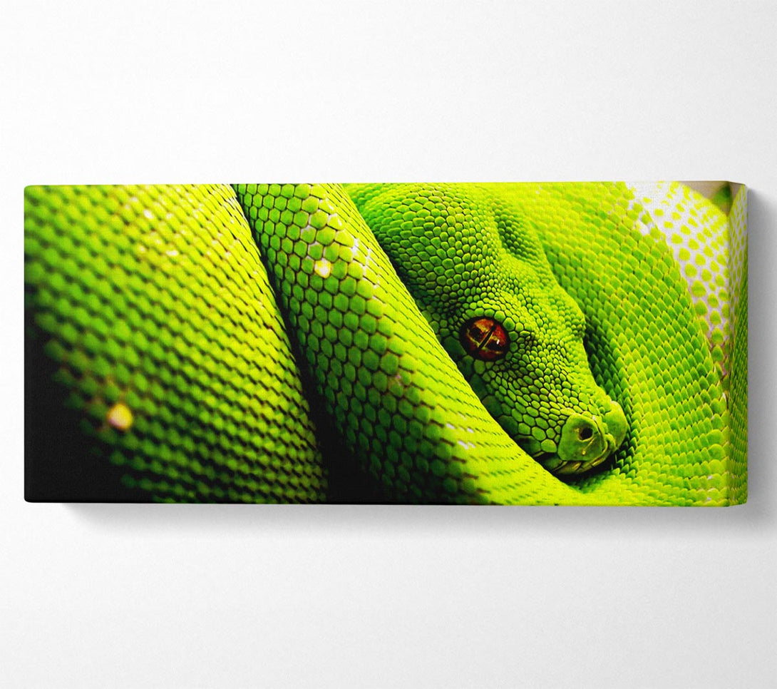 Green Snake Huddle canvas, printed on coated polyester canvas. Mounted on to a 44mm box frame, ready to hang.