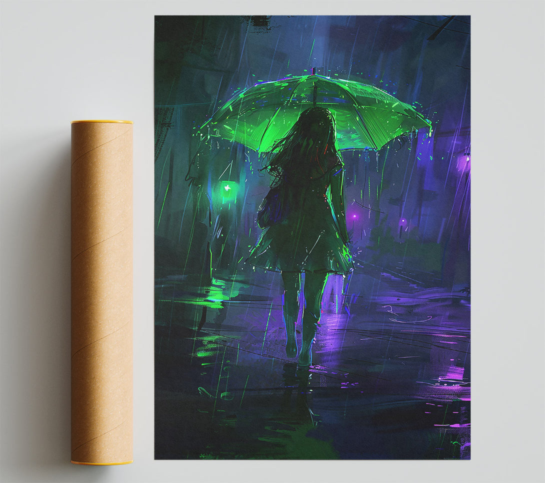 Our Green Umbrella In The Rain Poster is printed 260 GSM premium lustre paper that offers vibrant colours and exceptional detail.