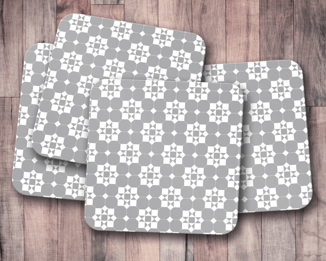 Grey and White Geometric Tiles Design Coasters, Table Decor Drinks Mat