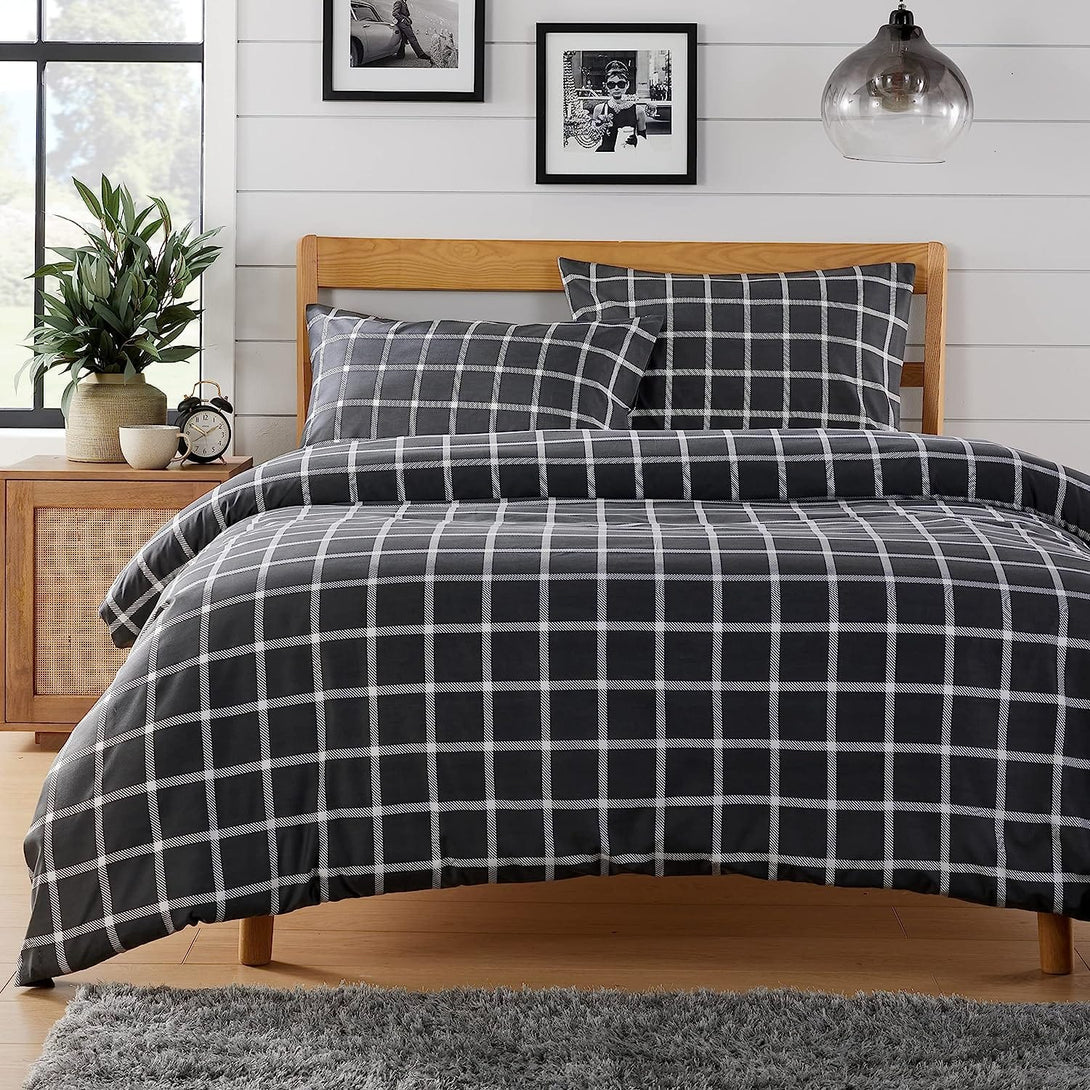 Description: Featuring a Boston Check Grey print, this duvet cover set adds a sophisticated touch to your bedroom decor. The reversible design provides versatility, allowing you to switch up the look of your room with ease.