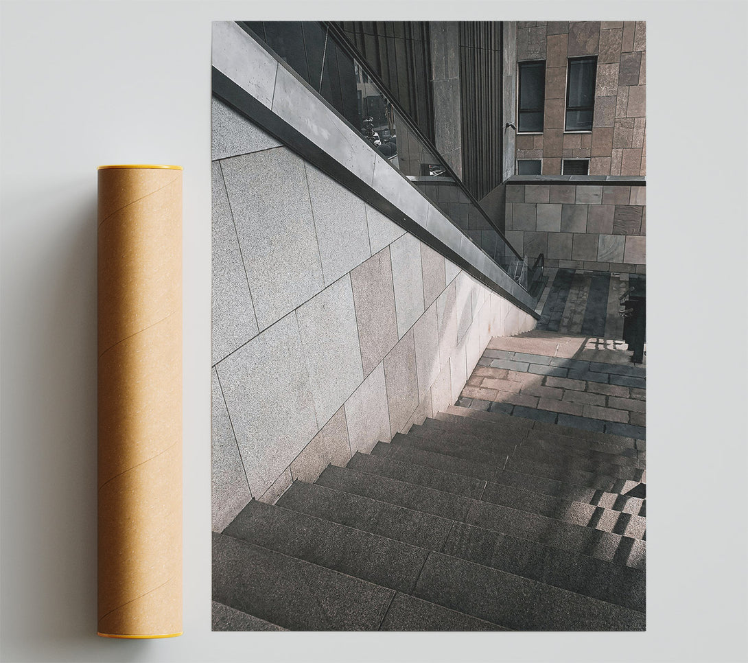 Our Grey Concrete Steps Poster is printed 260 GSM premium lustre paper that offers vibrant colours and exceptional detail.