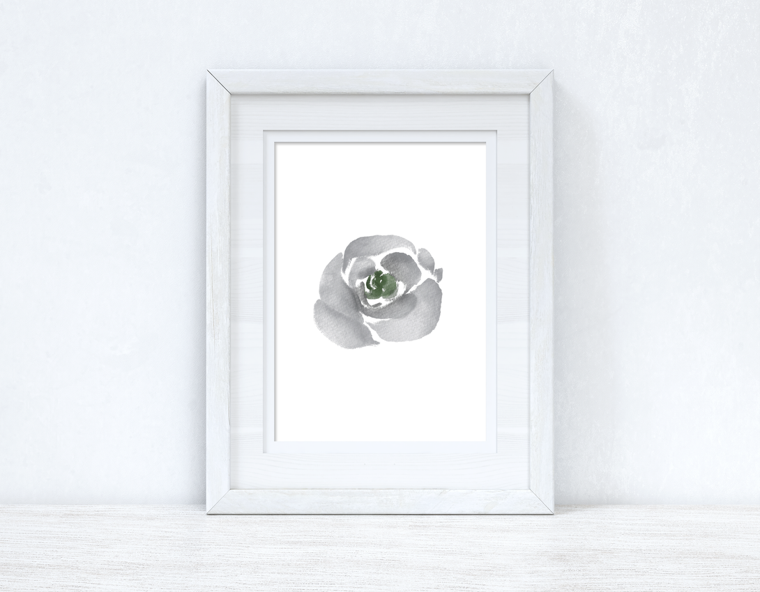 Grey Green Watercolour Flower 2 Bedroom Home Wall Decor Print