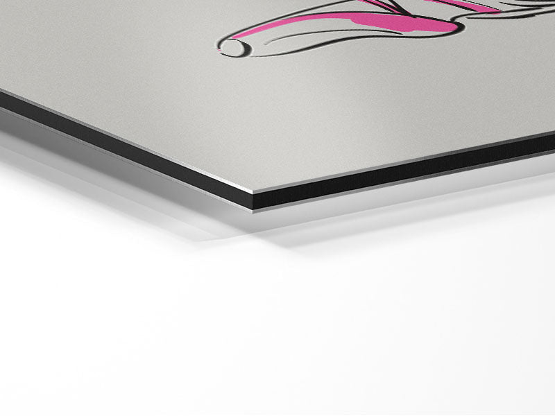 Grey Pink Ballerina 2 Printed on brushed aluminium dibond. A modern way to display art and easy to maintain.