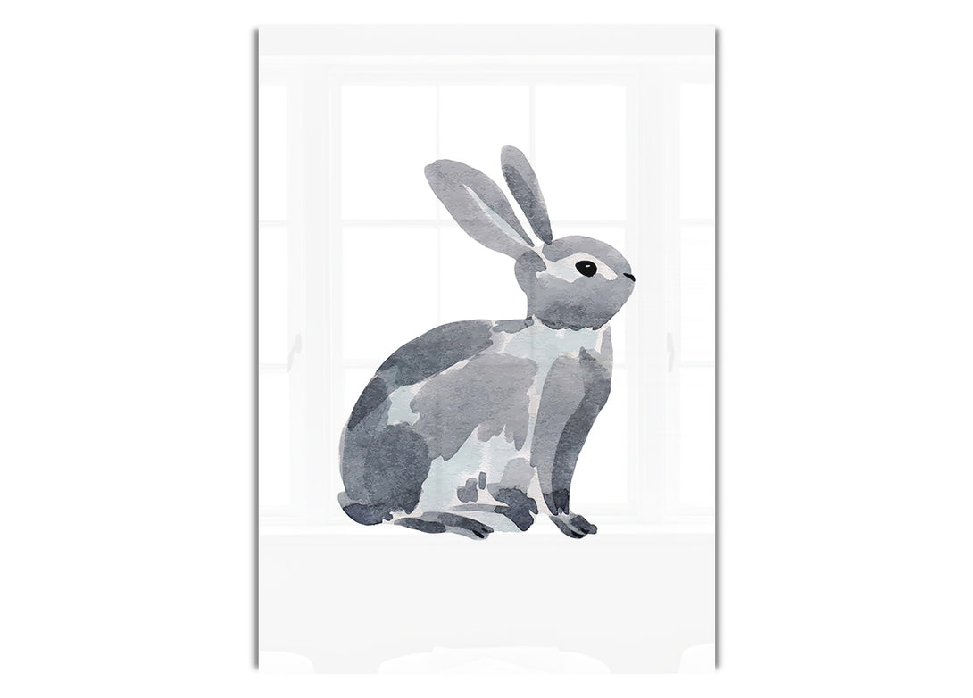 Grey Rabbit acrylic print, UV printed onto 5mm thick acrylic glass. Comes with everything you need to hang on your wall.