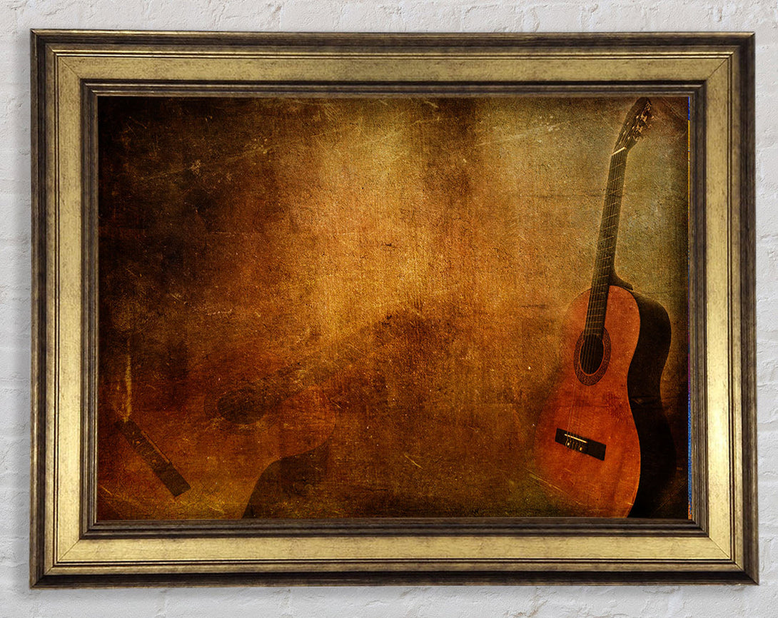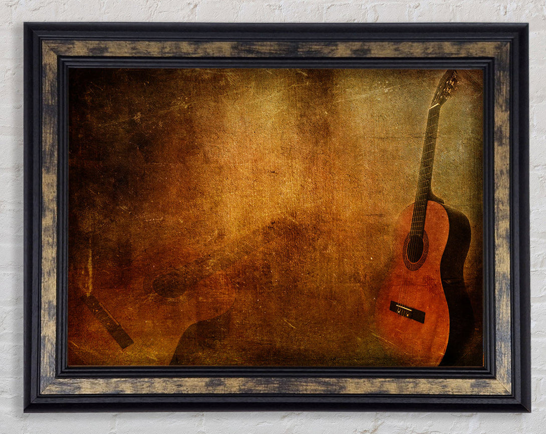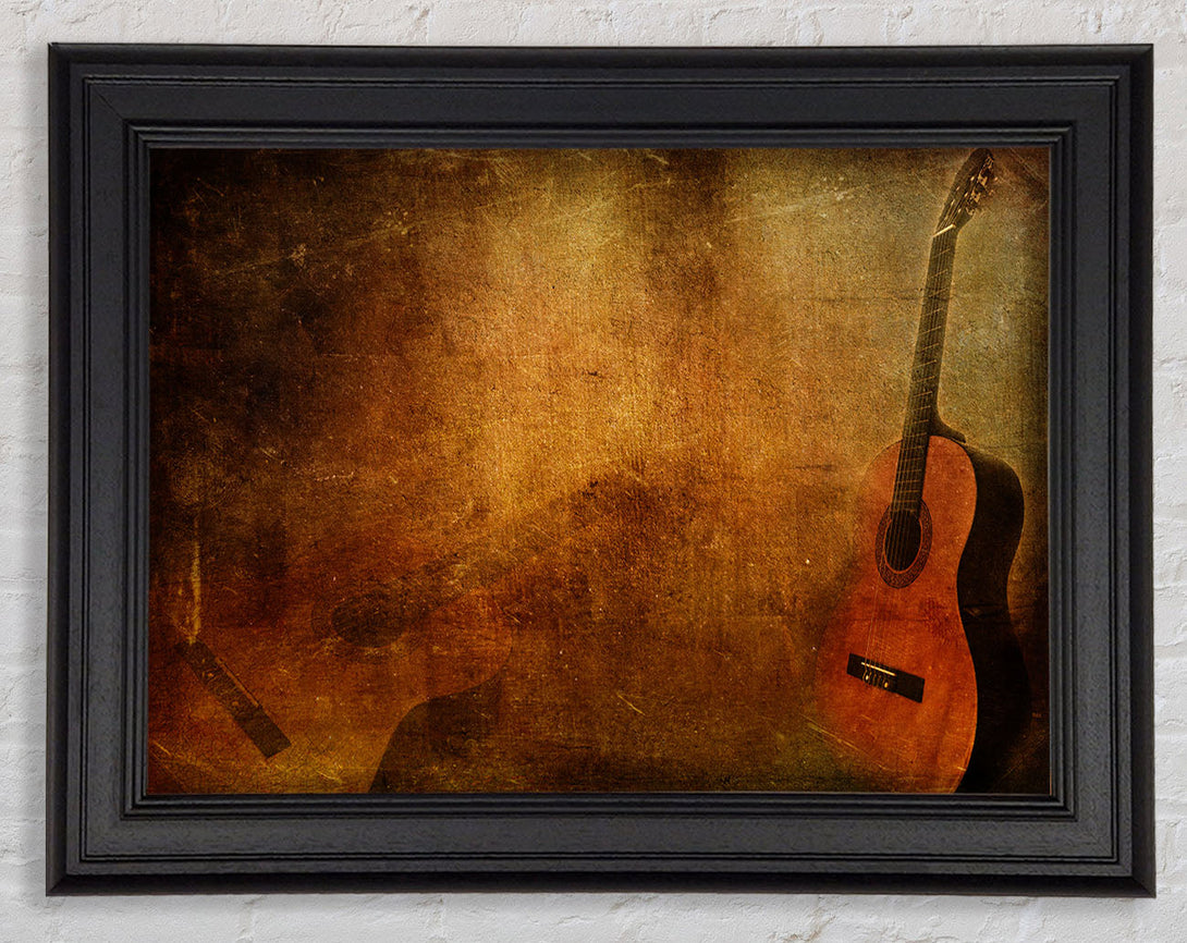 Grunge acoustic guitar Framed Print