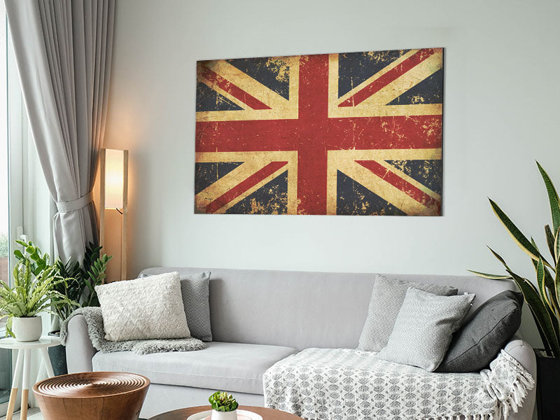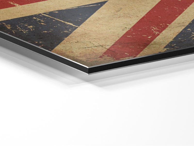 Grunge Union Jack Erosion Printed on brushed aluminium dibond. A modern way to display art and easy to maintain.