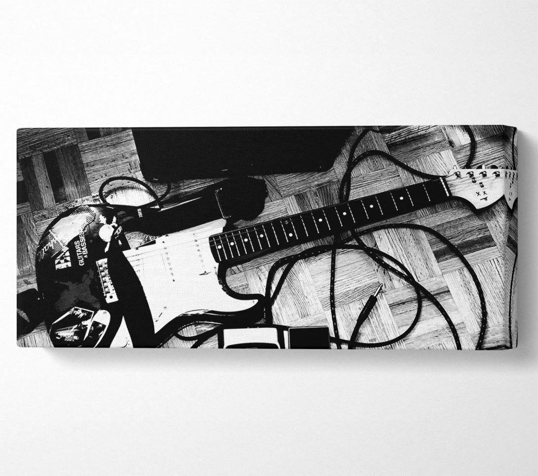 Guitar Setting canvas, printed on coated polyester canvas. Mounted on to a 44mm box frame, ready to hang.