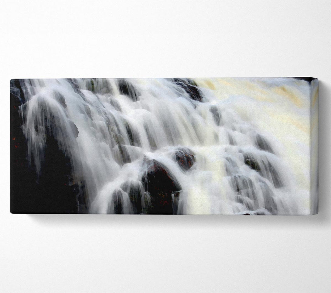 Gushing Waterfall Rocks canvas, printed on coated polyester canvas. Mounted on to a 44mm box frame, ready to hang.
