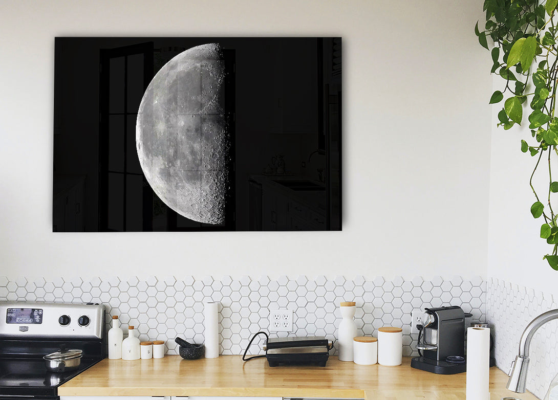 Half Moon acrylic print, UV printed onto 5mm thick acrylic glass. Comes with everything you need to hang on your wall.