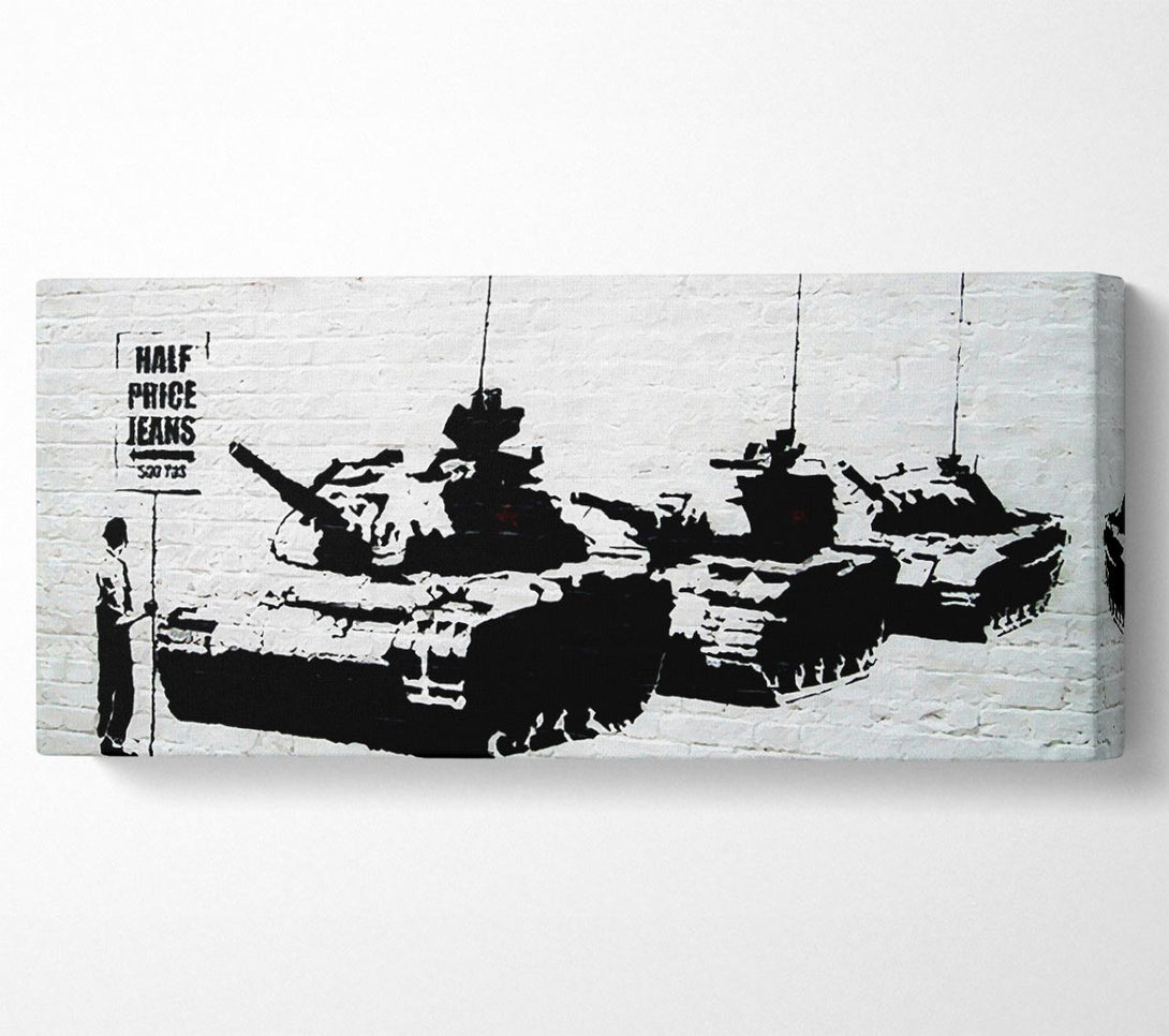 Half Price Jeans canvas, printed on coated polyester canvas. Mounted on to a 44mm box frame, ready to hang.
