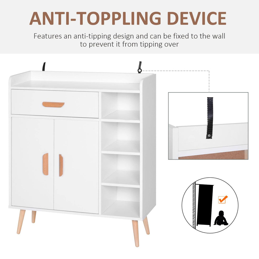 Keep your home stylish and the space tidy: look no further than this freestanding cabinet from HOMCOM. Features a spacious worktop, four open shelves, one slide-out drawer and a large cabinet with an adjustable shelf, giving a moderate amount of storage. All-match design indoor furniture fits most home decor