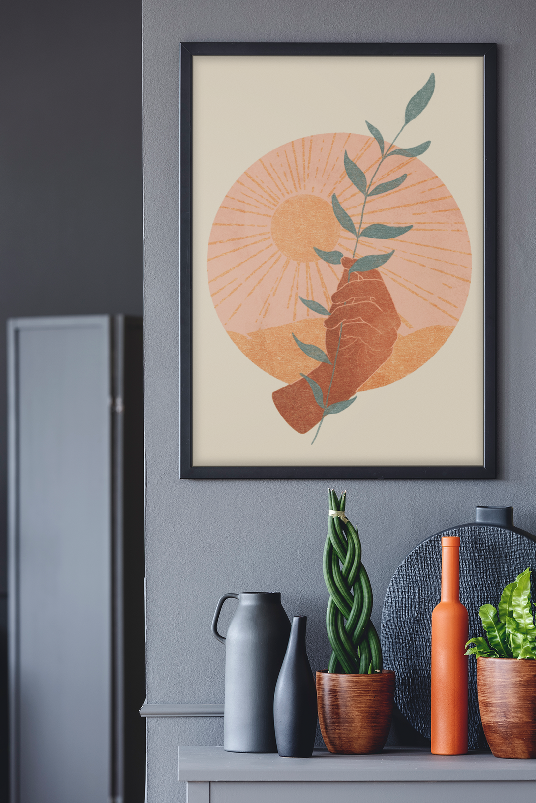 Hand Holding Plant Minimalist Illustration Home Wall Decor Print