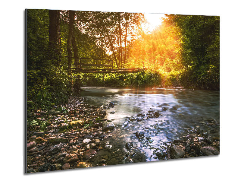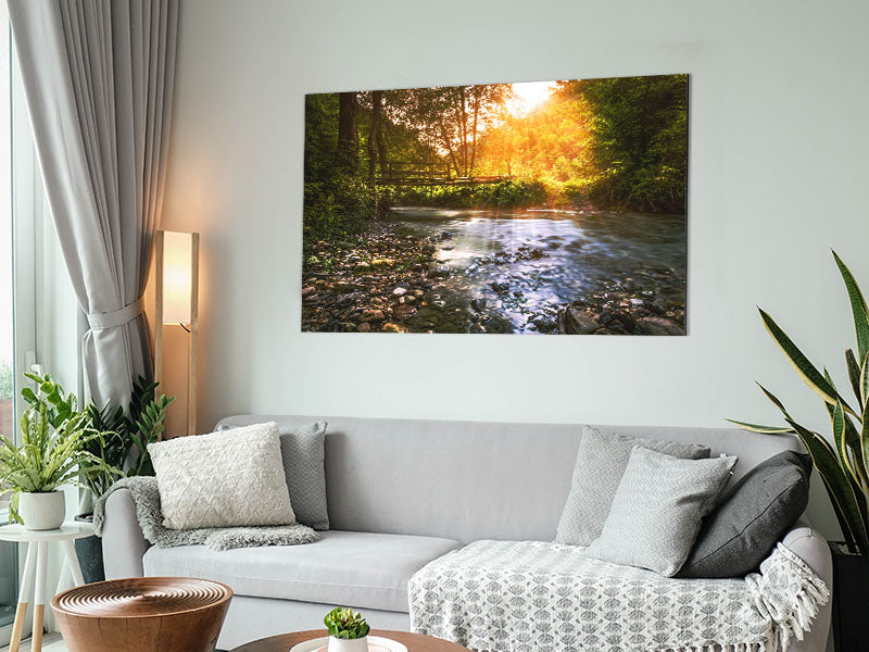 Handmade bridge in the woodlands Printed on brushed aluminium dibond. A modern way to display art and easy to maintain.