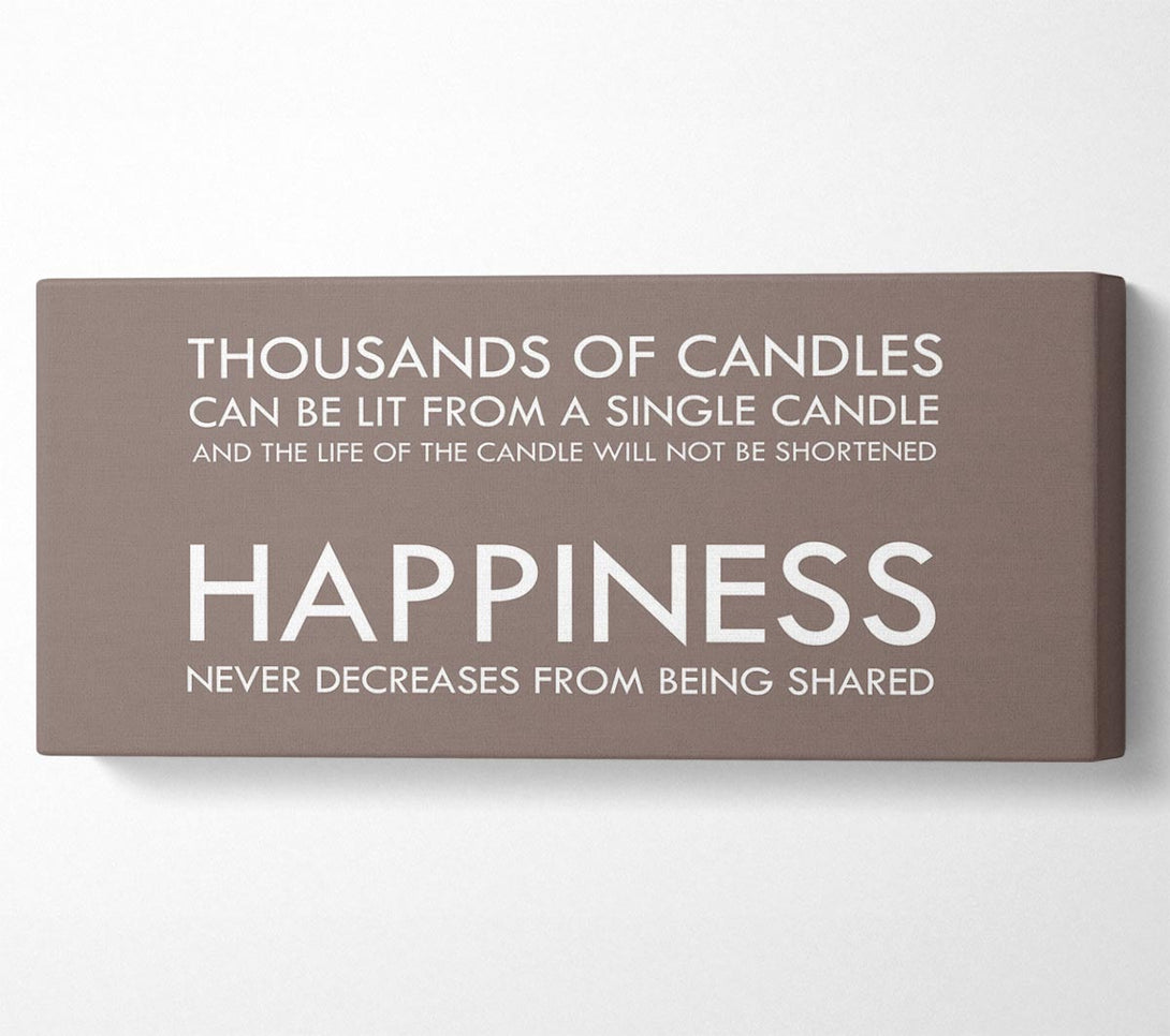 Happiness Never Decreases From Being Shared Beige canvas, printed on coated polyester canvas. Mounted on to a 44mm box frame, ready to hang.