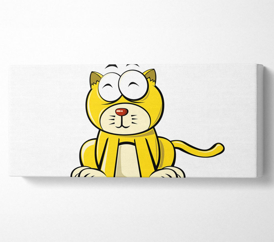 Happy Cat Sitting White canvas, printed on coated polyester canvas. Mounted on to a 44mm box frame, ready to hang.