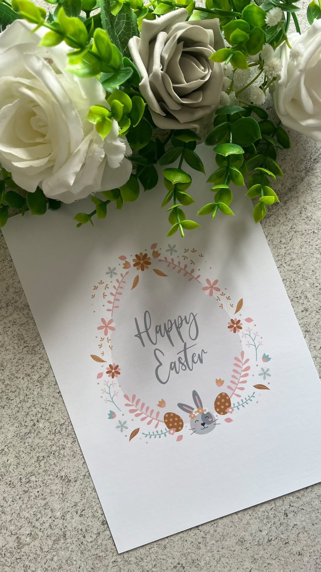 Happy Easter Bunny Egg Wreath Spring Easter Seasonal Wall Home Decor Print