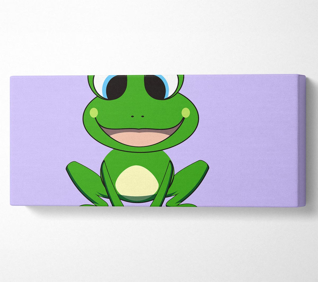 Happy Frog Ready To Leap Lilac canvas, printed on coated polyester canvas. Mounted on to a 44mm box frame, ready to hang.