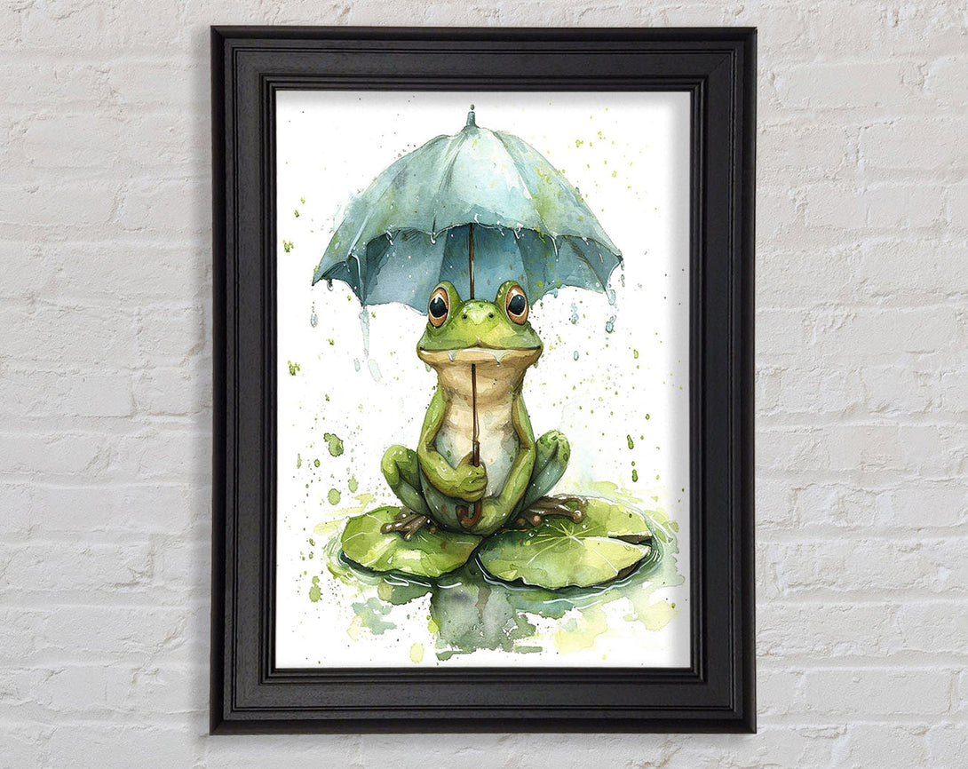 Happy Frog Umbrella Framed Print