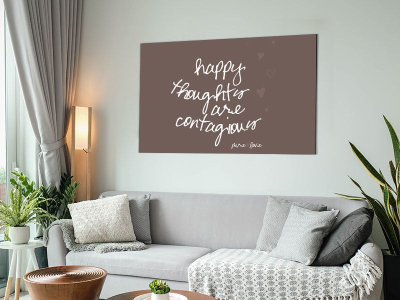Happy Thoughts Are Contagious Beige Printed on brushed aluminium dibond. A modern way to display art and easy to maintain.