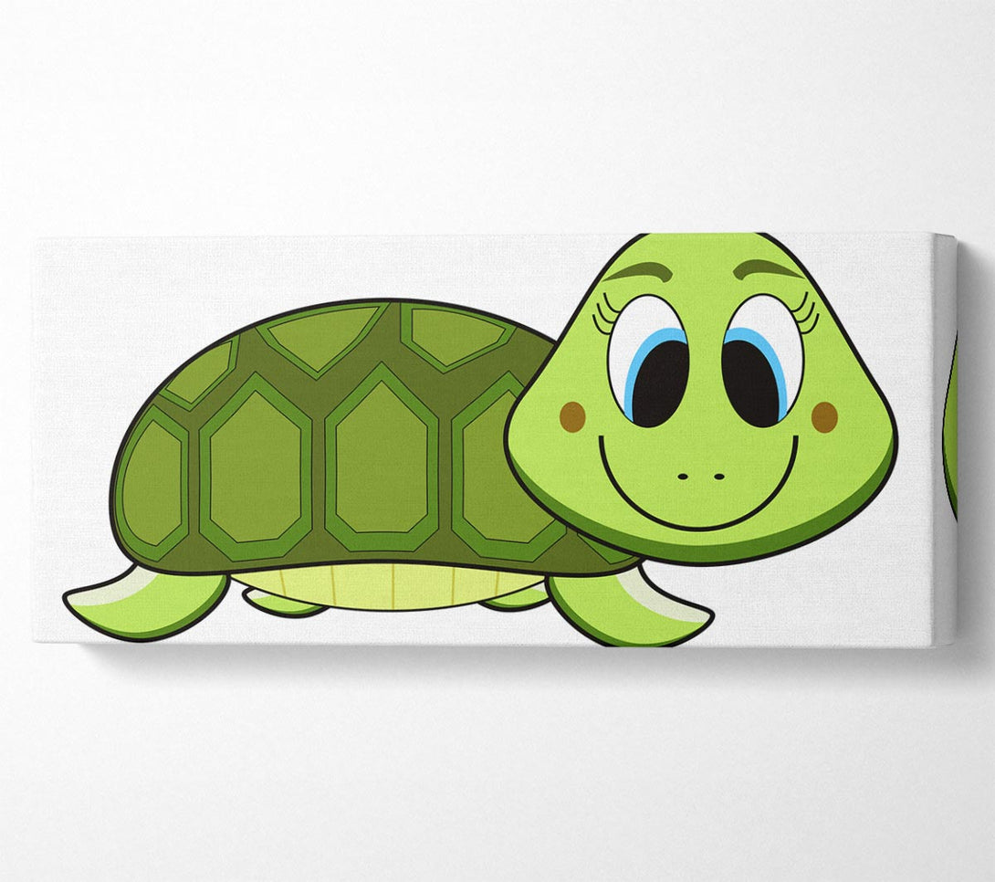 Happy Turtle White canvas, printed on coated polyester canvas. Mounted on to a 44mm box frame, ready to hang.