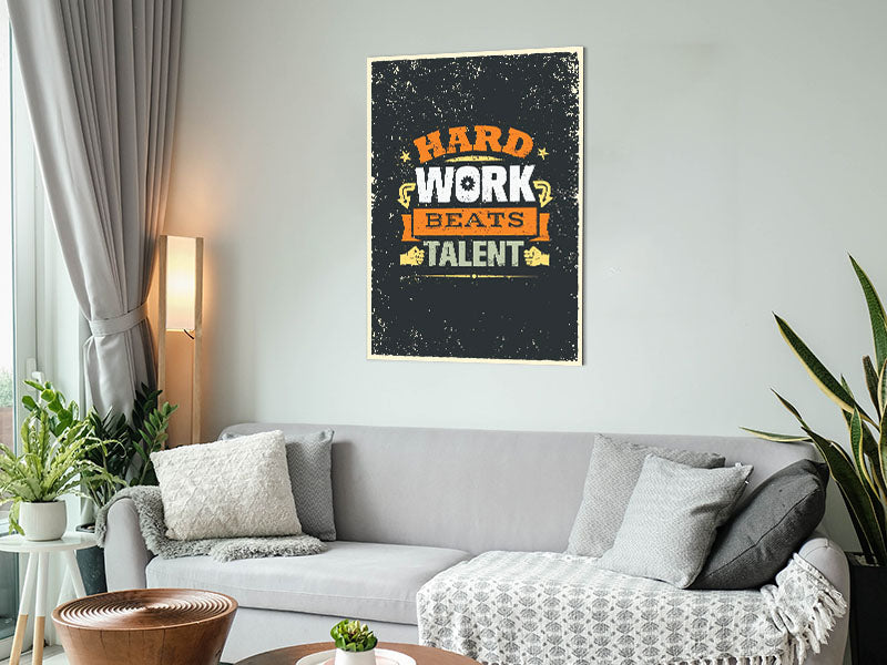 Hard Work Beats Talent Printed on brushed aluminium dibond. A modern way to display art and easy to maintain.